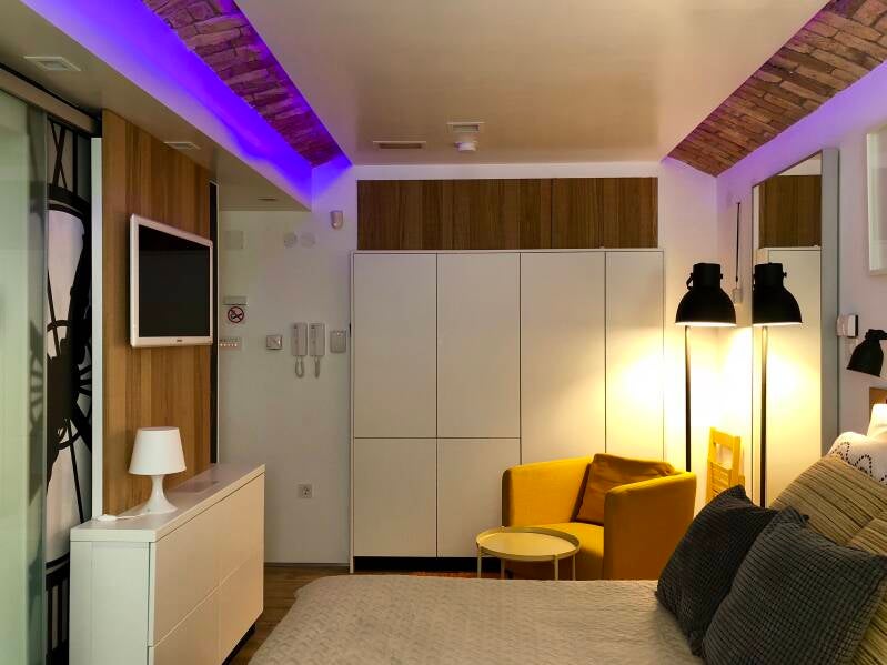 The apartment is located at Đorđićeva 10, Zagreb, it is located in the basement of a building that also has an exit to the yard where there is a park and has a total area of 25 m². The price for one month is €550 for one person (variable depending on the length of stay), while for the second person there is no additional fee of 25% on the basic price. All utilities and internet are included in the price, with no additional hidden costs.It is important to note that the apartment has limited natural lighting, which makes it less suitable for those for whom daylight is a priority, but the space is very well equipped with indirect lighting. Washing machine and dryer included in the price.