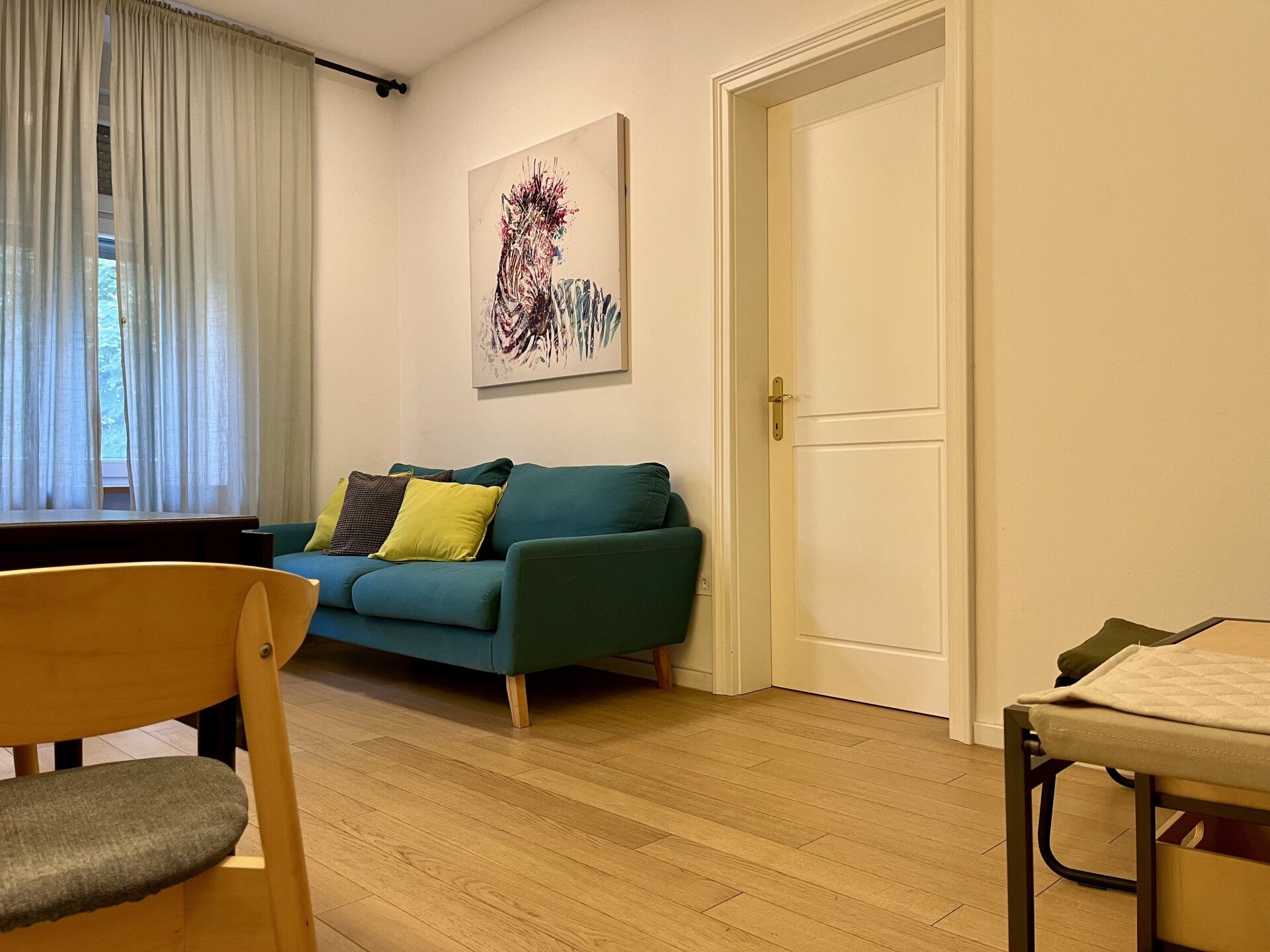 The apartment is located at Đorđićeva 10, Zagreb, it is located on the first floor on the courtyard side of the building where there is a park and has a total area of 40 m². The price for one month is €850 for one person (variable depending on the length of stay), while for the second person there is no additional fee of 25% on the basic price. The price includes all utilities and internet, with no additional hidden costs. Use of the washing machine and dishwasher is included.
